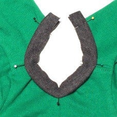 Next, stretch neckband to fit neck and continue to pin neckband evenly.