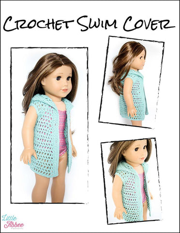 Your 18” doll will be ready for the beach in her new Swim Cover by Little Abbee! This pattern features a hood, and short sleeves. It buttons up the front, but includes a no button option as well. It is crocheted with an open weave design.