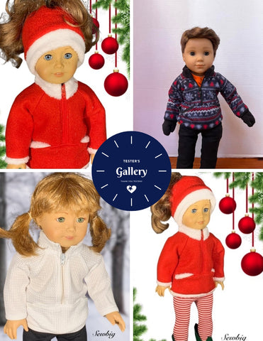 Your 18-inch doll will look fabulous in the Arctic fleece pullover featuring easy to sew raglan sleeves, a kangaroo pocket, elastic trimmed waistband and cuffs, and a half zipper front. The sewing pattern includes easy to follow instructions that will take the fear out of sewing zippers and using fold over elastic!
