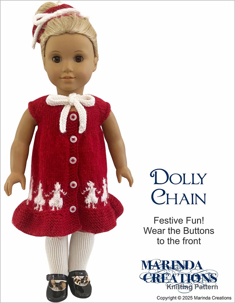 This PDF Knitting Pattern by Marinda Creations, is designed to fit popular 18" dolls such as those shown in the photos.
