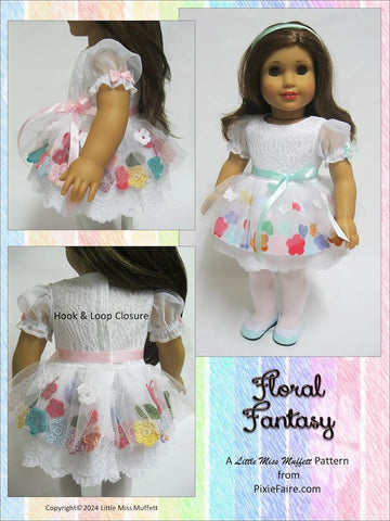 This Intermediate sewing and crochet pattern from Little Miss Muffett is designed to fit 18-inch soft-bodied dolls such as American Girl® and is available exclusively from Pixie Faire.