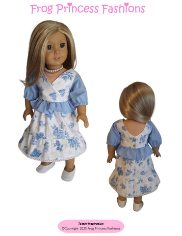 This PDF sewing pattern by FROG Princess Fashions is designed to fit 18" dolls such as American Girl®. This pattern is modeled on modern, Mattel brand American Girl® dolls with slimmer bodies, but has enough ease to fit many of the older style Pleasant Company dolls. Be sure to compare the pattern pieces to your doll prior to cutting.