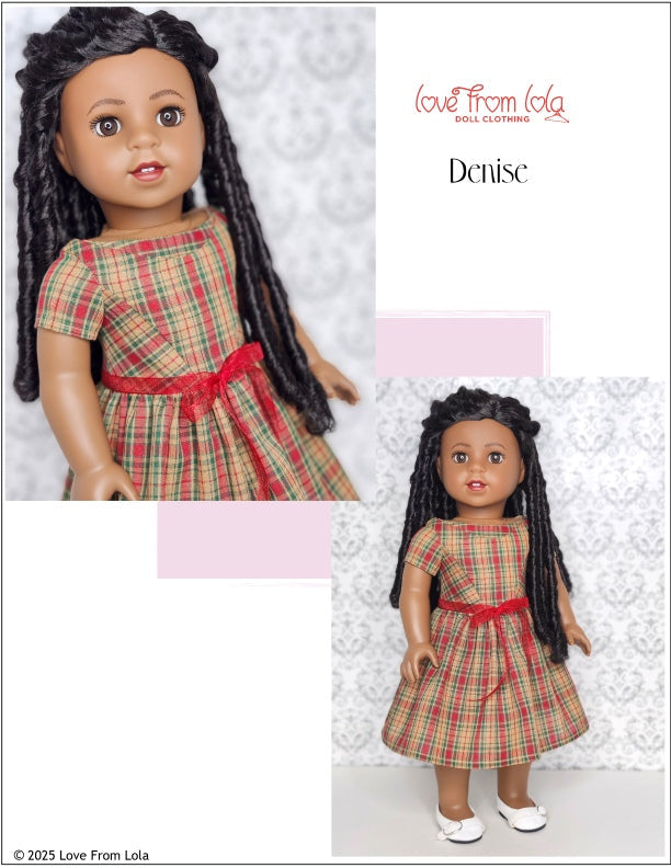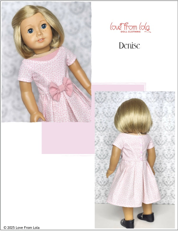 This PDF sewing pattern by Love From Lola is designed to fit popular 18" dolls such as those shown in the photos.