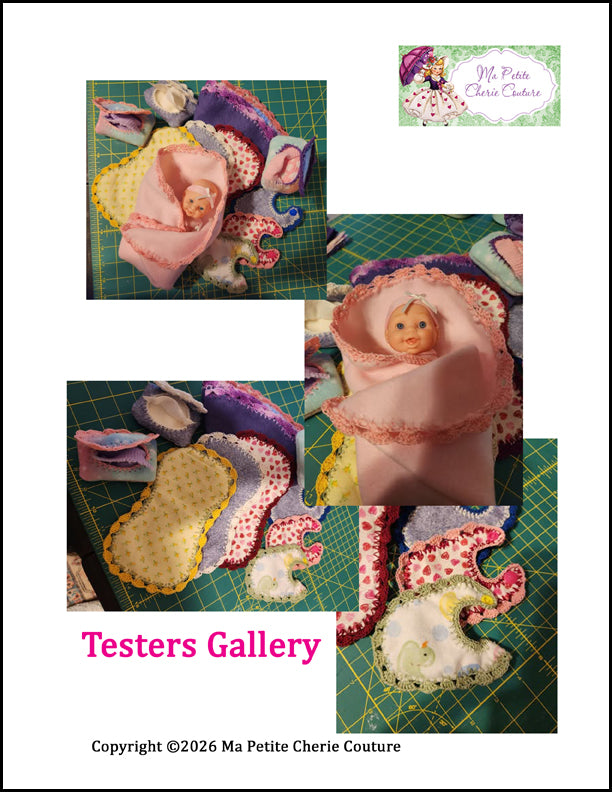 This PDF sewing pattern by Ma Petite Cherie Couture is designed to be used with 8" baby dolls such as those shown in the photos.