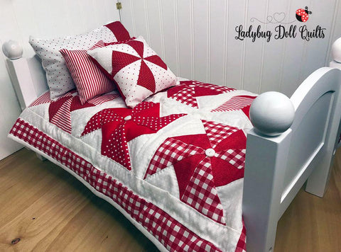 This PDF quilting pattern is perfectly sized to fit the beds of 18" dolls such as American Girl®.