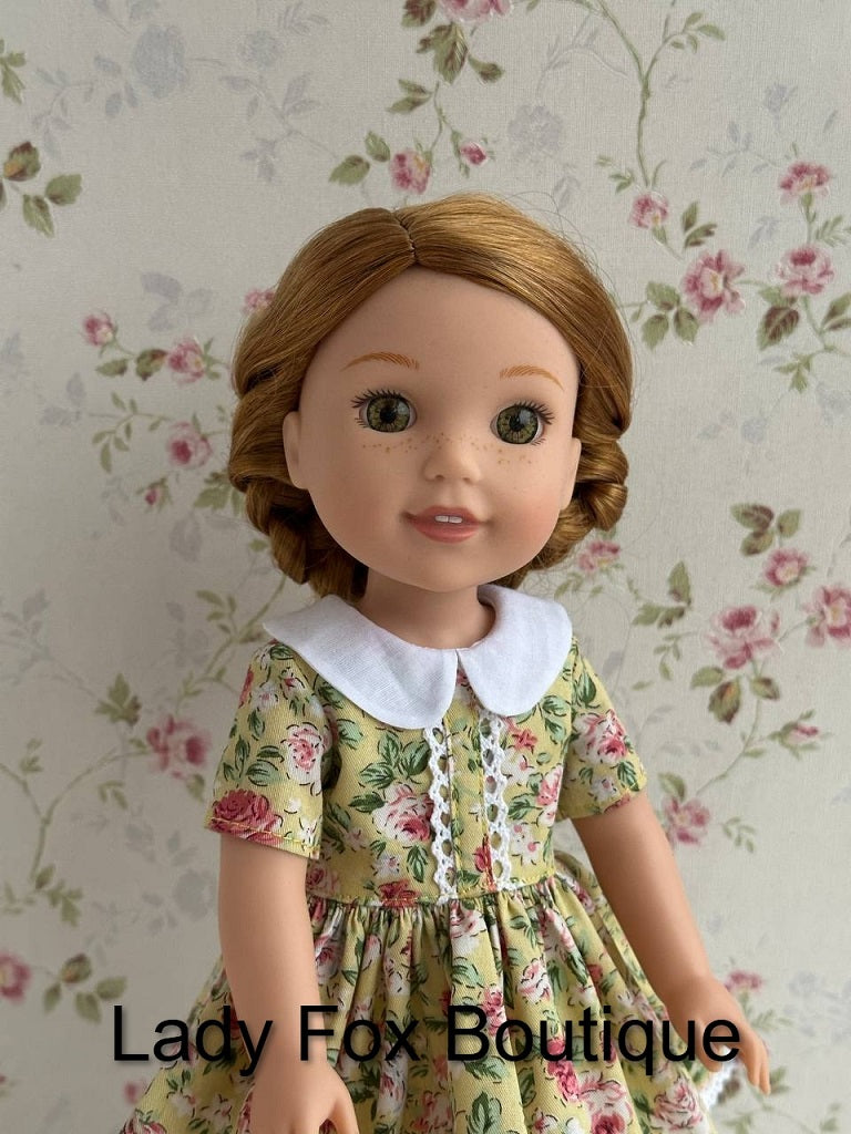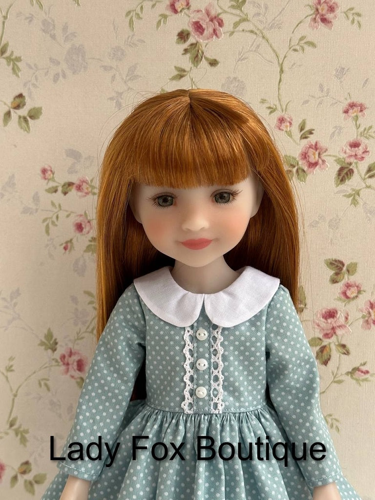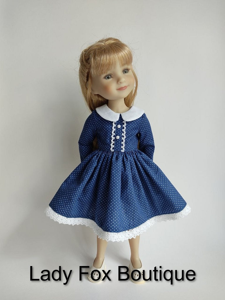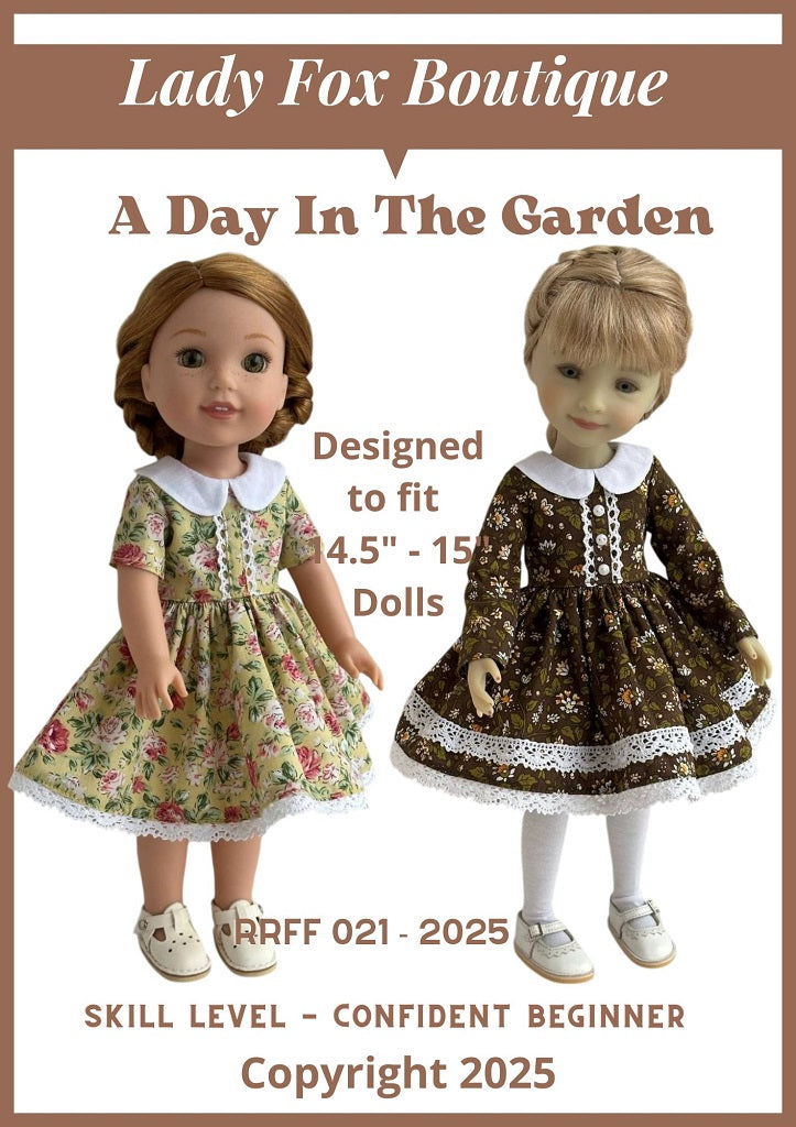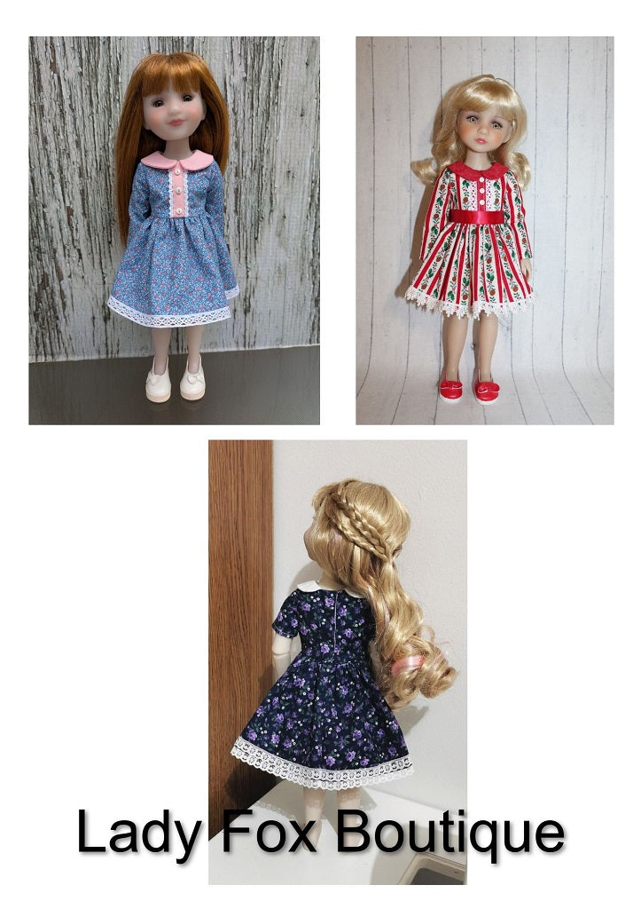 This PDF pattern by Lady Fox Boutique is designed to fit popular 14.5-15" dolls such as those shown in the photos.
