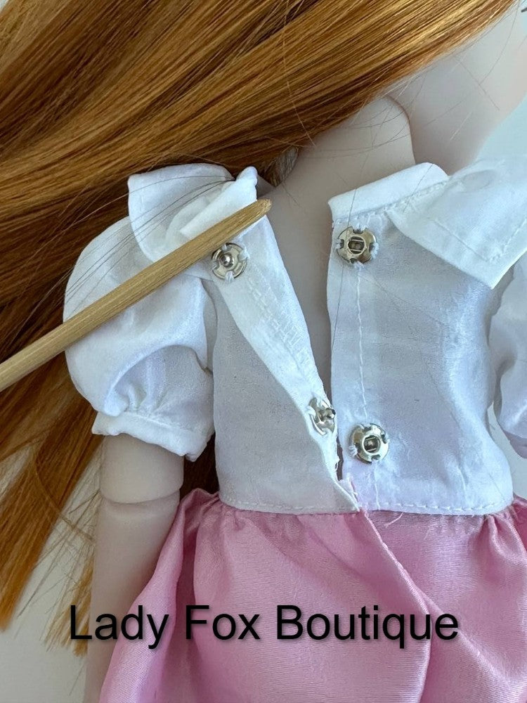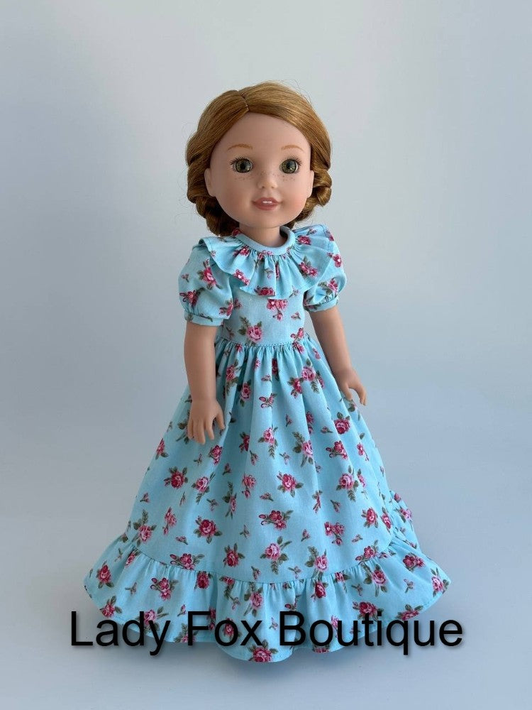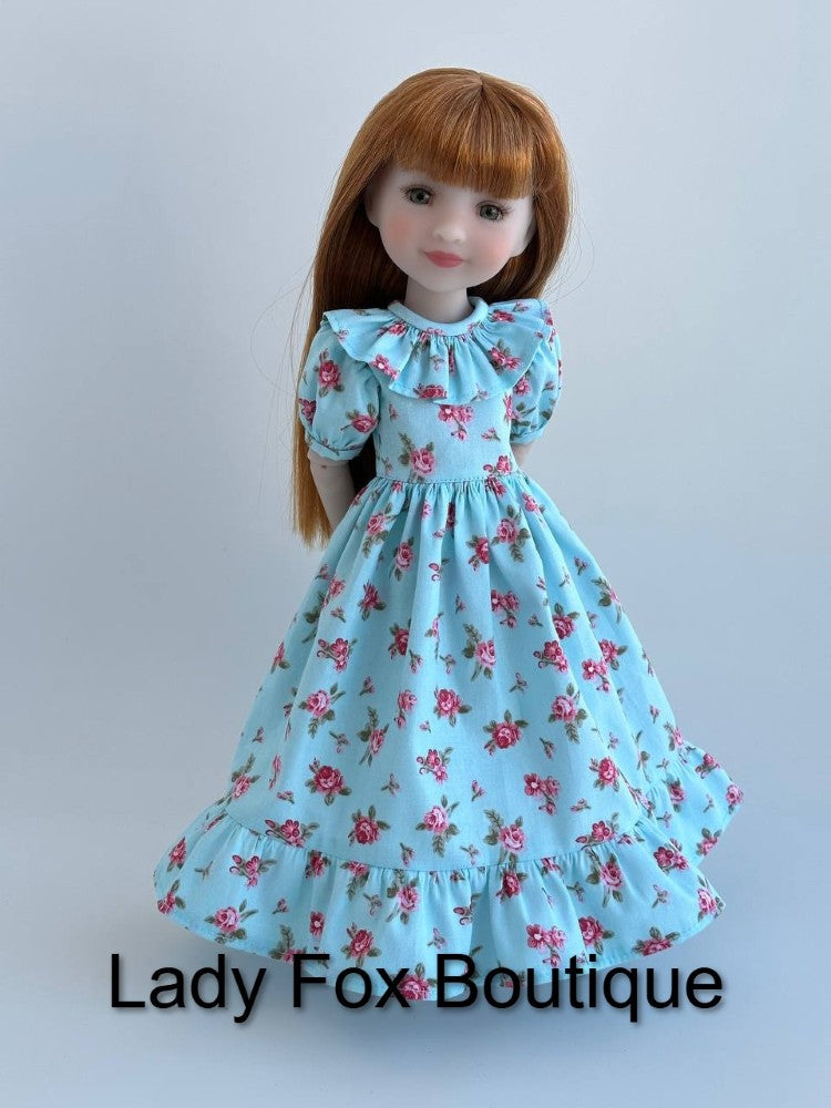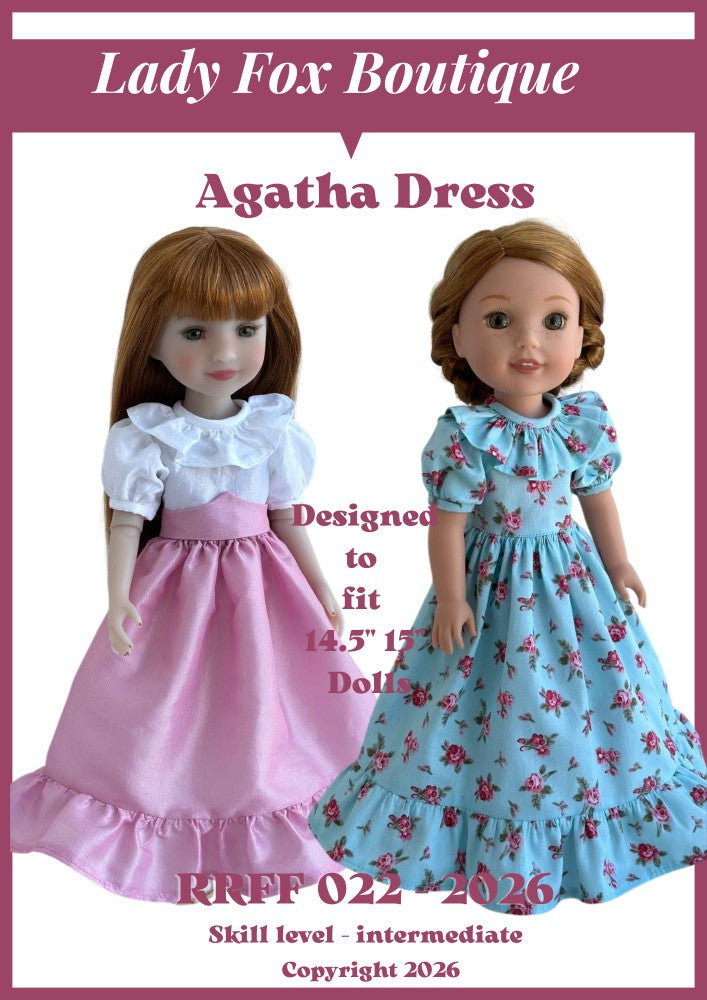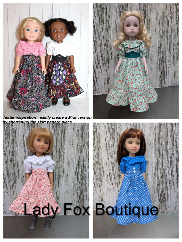 This PDF pattern by Lady Fox Boutique is designed to fit 14.5-15 Inch Dolls such as those pictured in the photos.