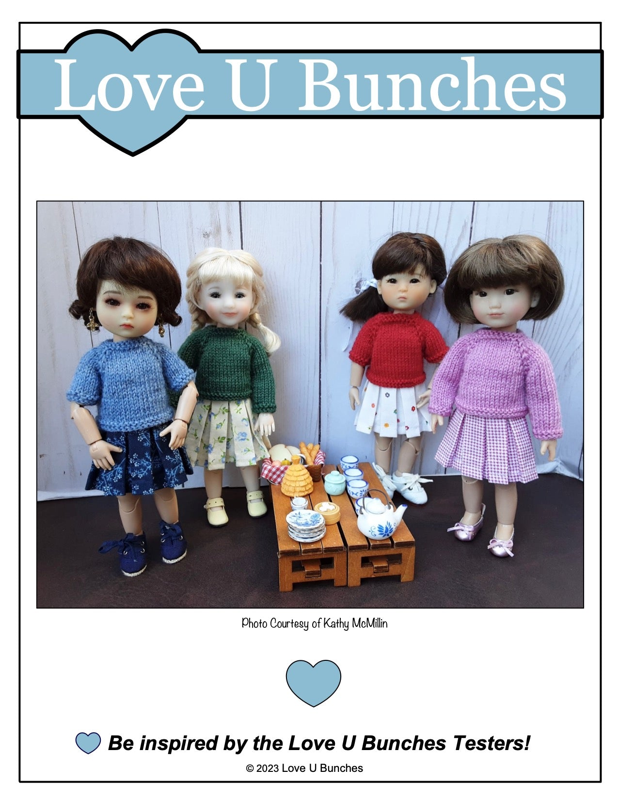 This PDF knitting pattern by Love U Bunches is designed to fit 8" BJD dolls such as Ten Ping™ and Mini Sara™.