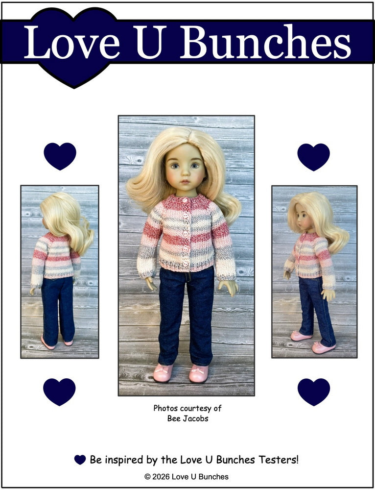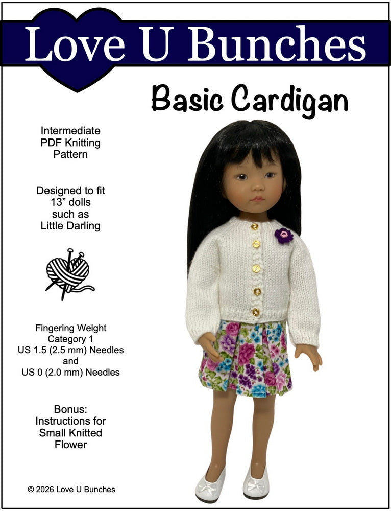 This PDF knitting pattern by Love U Bunches is designed to fit 13" dolls such as Little Darling.