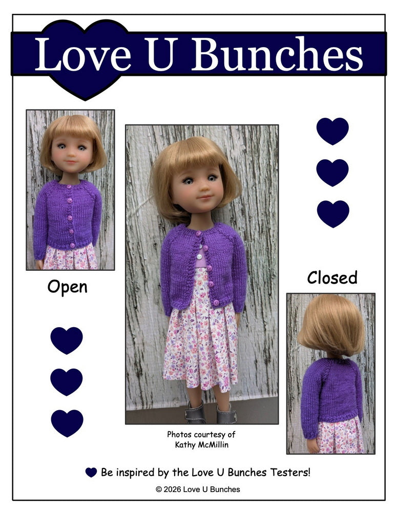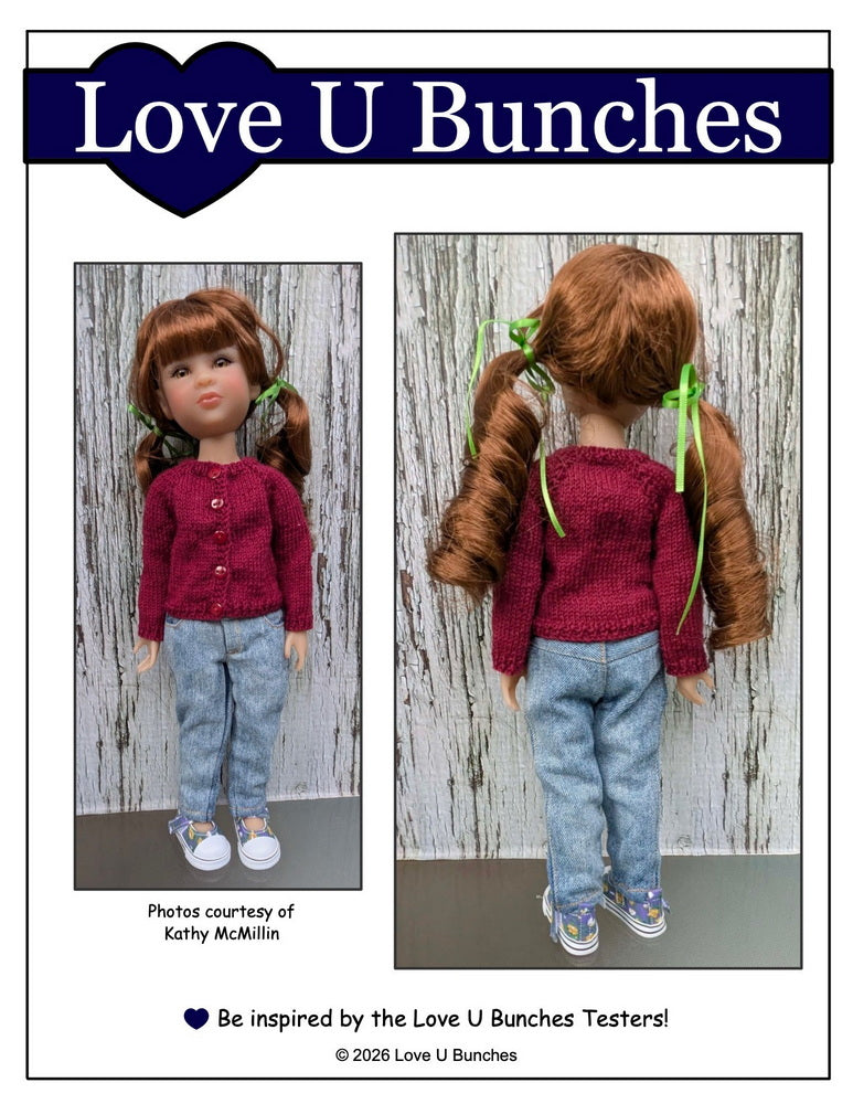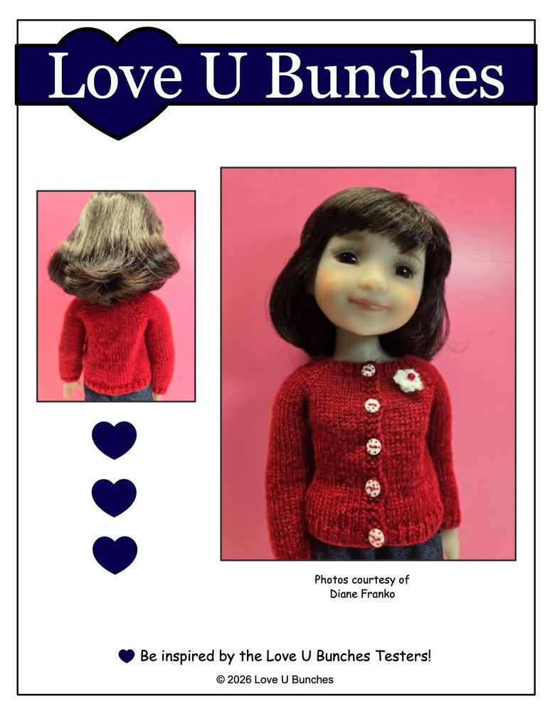 This PDF knitting pattern by Love U Bunches is designed to fit 15" dolls such as Ruby Red Fashion Friends.