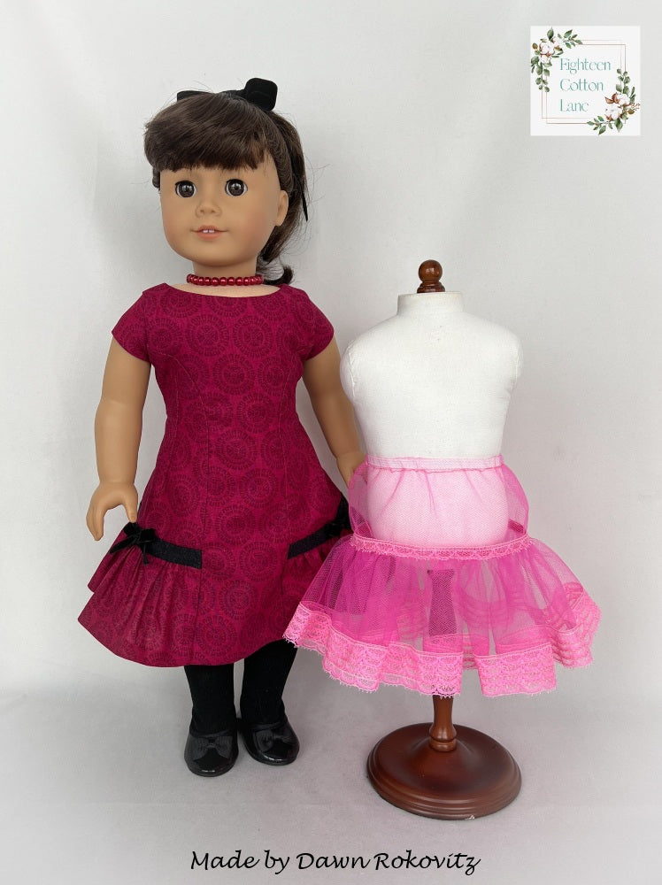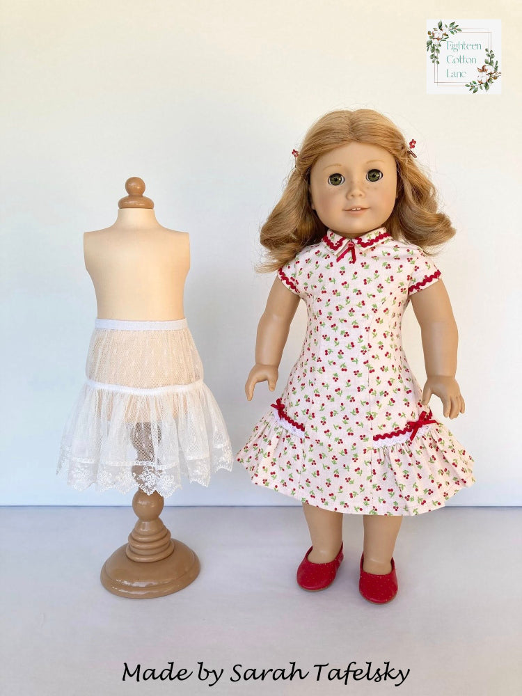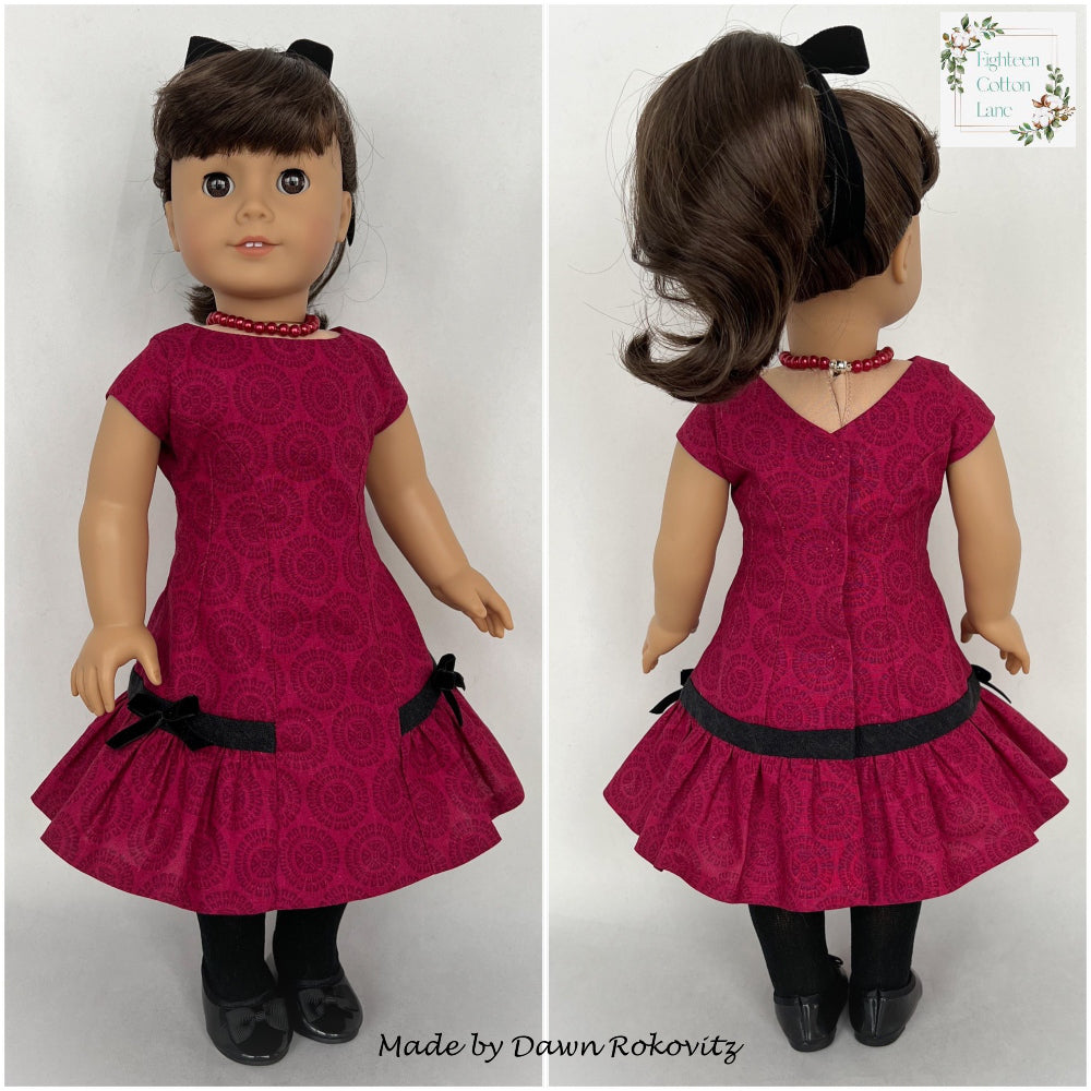 This PDF sewing pattern, by Eighteen Cotton Lane, is designed to fit popular 18" dolls. This pattern will fit a variety of eighteen-inch dolls, such as those shown in the photos.