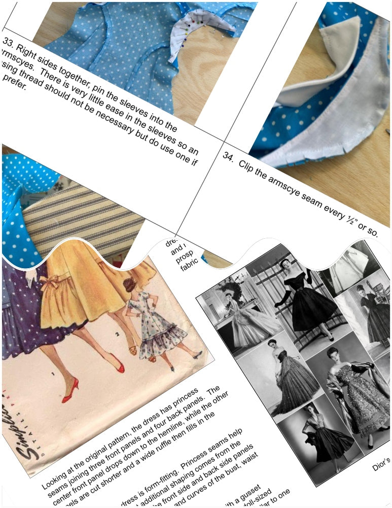 The pattern introduction includes a brief illustrated fashion history to place this design in the context of Christian Dior's "New Look", as well as a fun peek at the popularity of lavish petticoats in the 1950s.