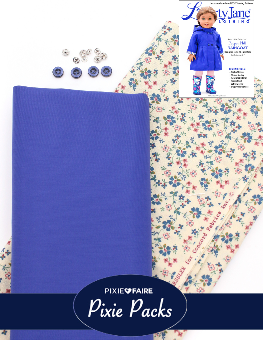 The Pepper Hill Jacket Pixie Pack: This Pixie Pack provides everything you need to make the Liberty Jane Pepper Hill Raincoat for 18 inch dolls or 14.5-15" dolls!