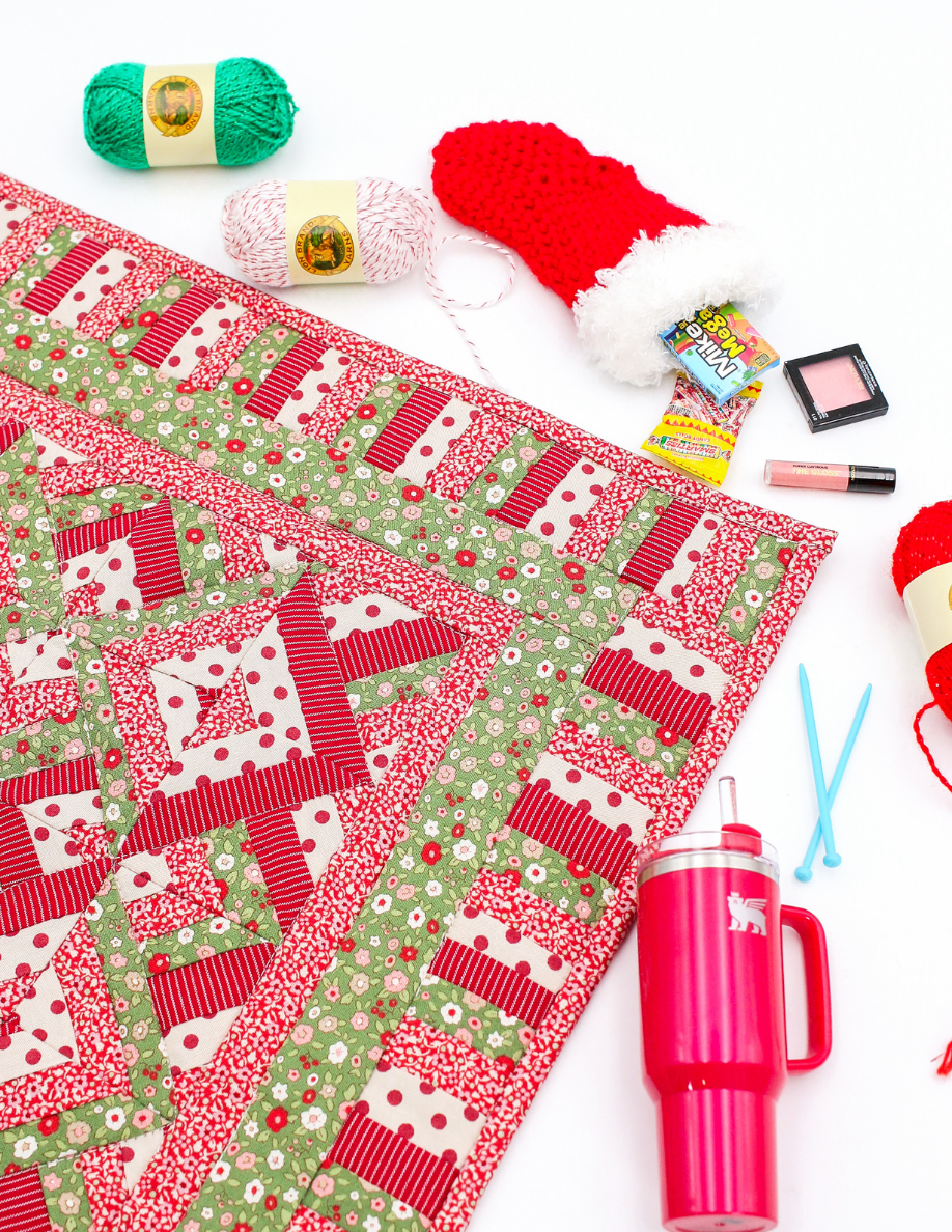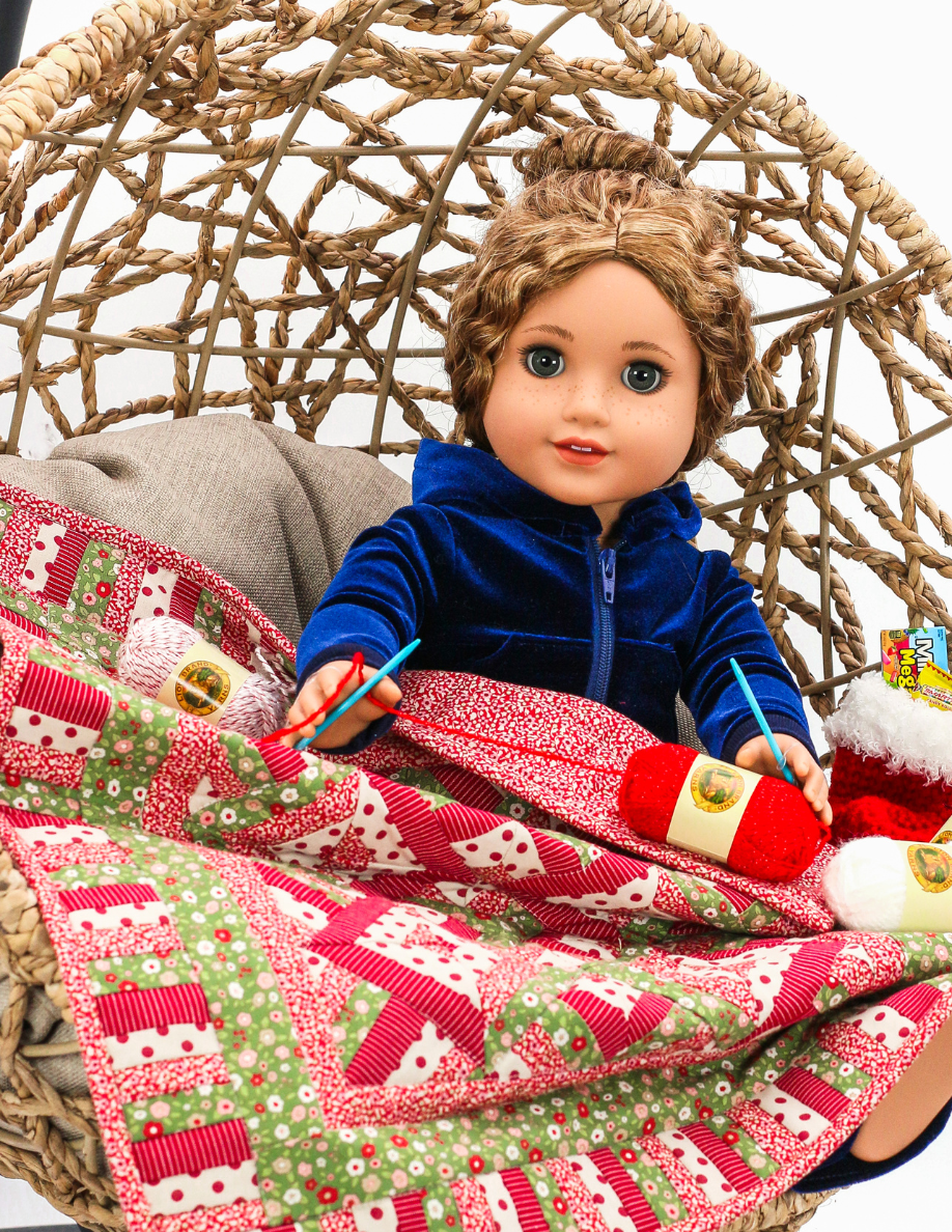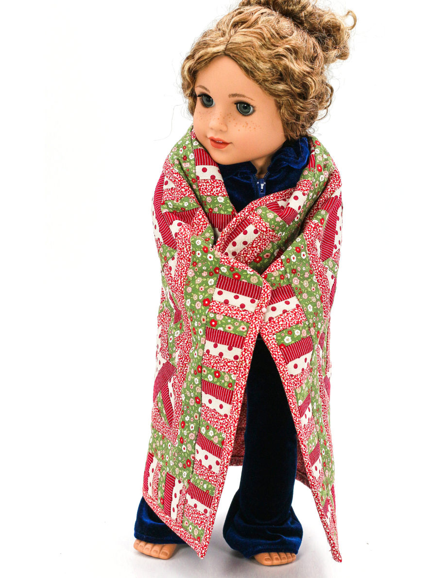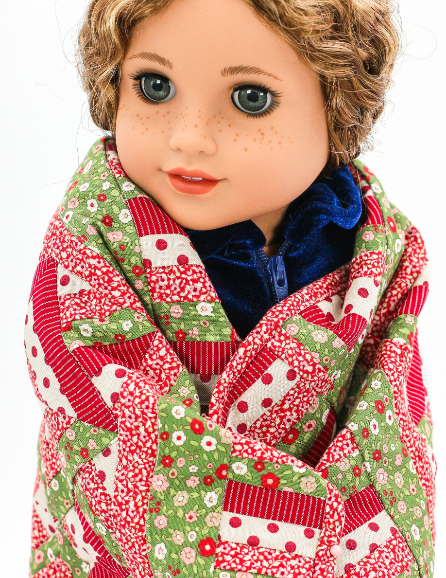 The Tropical Illusion quilt pattern is sold separately. Sewing With Cinnamon members can redeem the monthly coupon code to get it for free if desired. The finished quilt is pictured in the example images. Doll and mini props are not included with this kit.