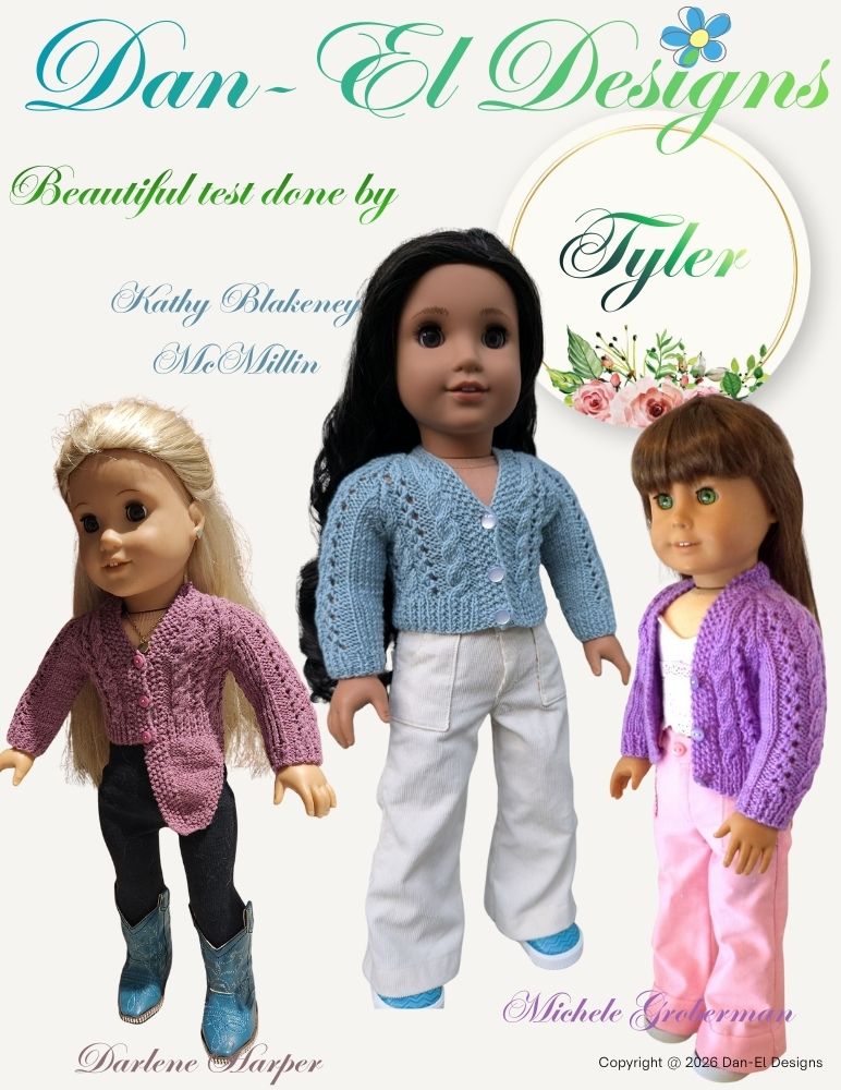 This intermediate PDF knitting pattern, by Dan-El Designs is designed to fit popular 18” soft-bodied dolls such as those shown in the photos.